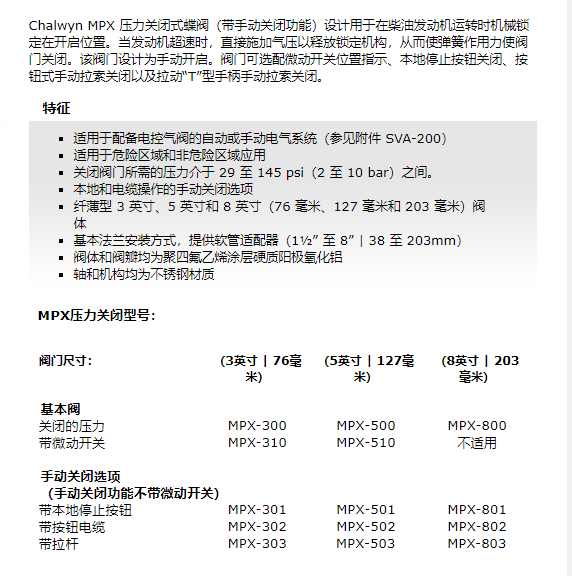 CHALWYN蝶阀,CHALWYN火花抑制器,CHALWYN交流发电机